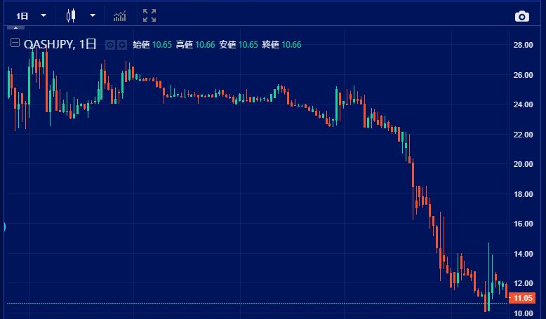 さらにその半値まで落ちることも多いので、QASHなら5.5円どころ・・